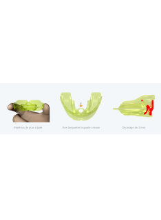 Ajusté et personnalisé par le praticien à l’occlusion thérapeutique correcte, lorsqu’il est combiné au myOSA TMJ pendant la nuit, le myOSA TMD convient aux patients avec des symptômes plus sévères de troubles des ATM.