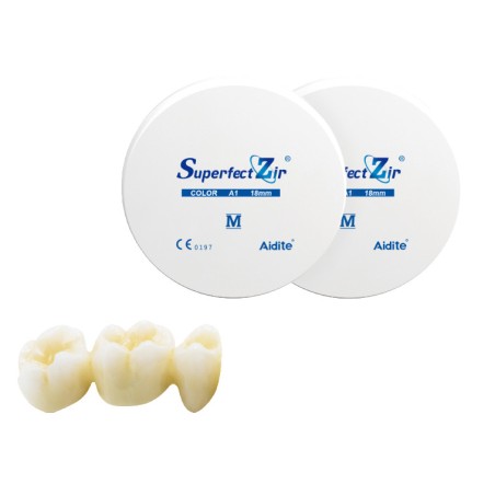 Le bloc zircone en 3D Pro est un matériau de contour complet, esthétiquement naturel, disponible en 16 couleurs avec une translucidité de 57 % - Sa résistance à la flexion est >= 900MPa avec une force appropriée d'occlusion pour réduire l'usure de la dentine opposée