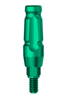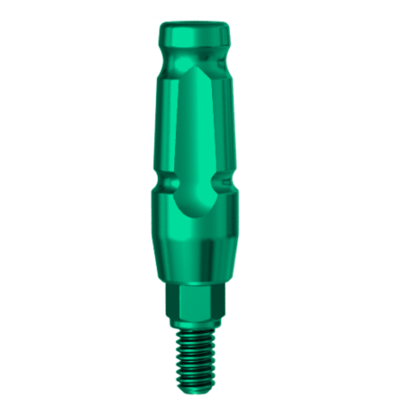 Utilisé pour fabriquer des prothèses unitaires ou à unités multiples scellées en présence d'un sillon gingival profond. Emballé avec une vis de pilier. Alliage de titane. Revêtement TiN pour l'esthétique. Couple final: 30 Ncm.