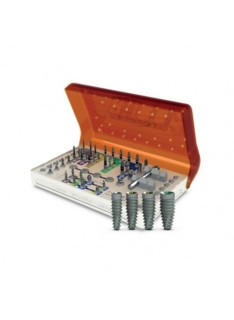 Le kit d'implantologie se compose d'une trousse chirurgicale, 70 implants et piliers droits.